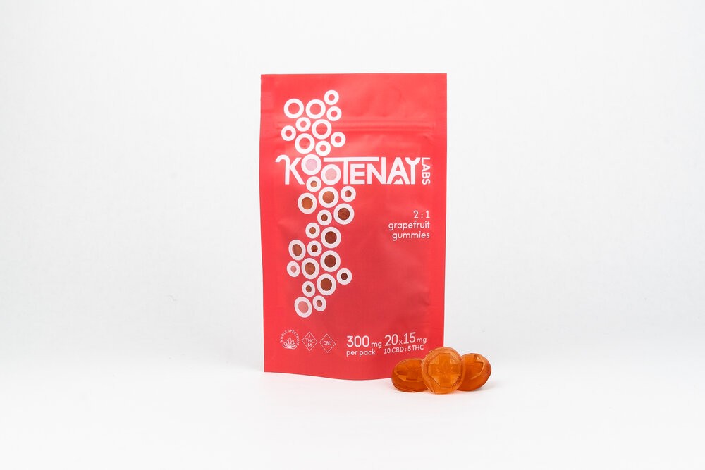 Kootenay Labs – 2:1 Gummies – Grapefruit (10mgCBD/5mgTHC) – 300mg | BC Weed Edible Canada