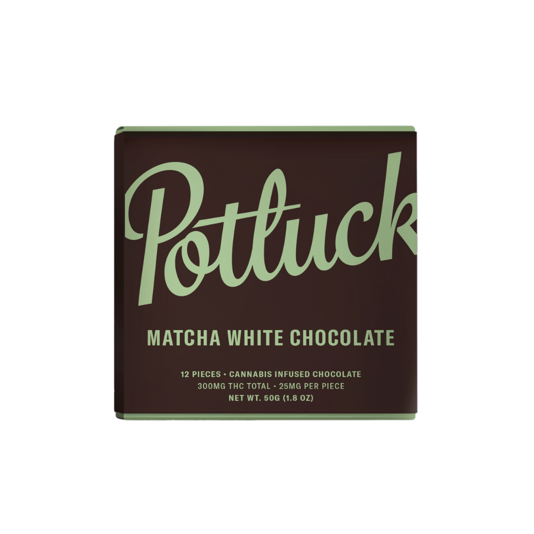 Developed in collaboration between the most notable pioneers in the Canadian edibles extracts industry, Potluck chocolate bars are created with the modern edibles connoisseur in mind. You take your edibles seriously; so do we. Our chocolate bars are crafted with diligence and precision by the Potluck team to provide an accessibly priced experience without compromising purity or taste: that’s why we use only all – natural, high quality flavours and full spectrum edibles oils and isolates. Ideal for dessert lovers who prefer a departure from classic milk chocolate, our Matcha White Chocolate bar contains 300mg THC divided into twelve 25mg pieces